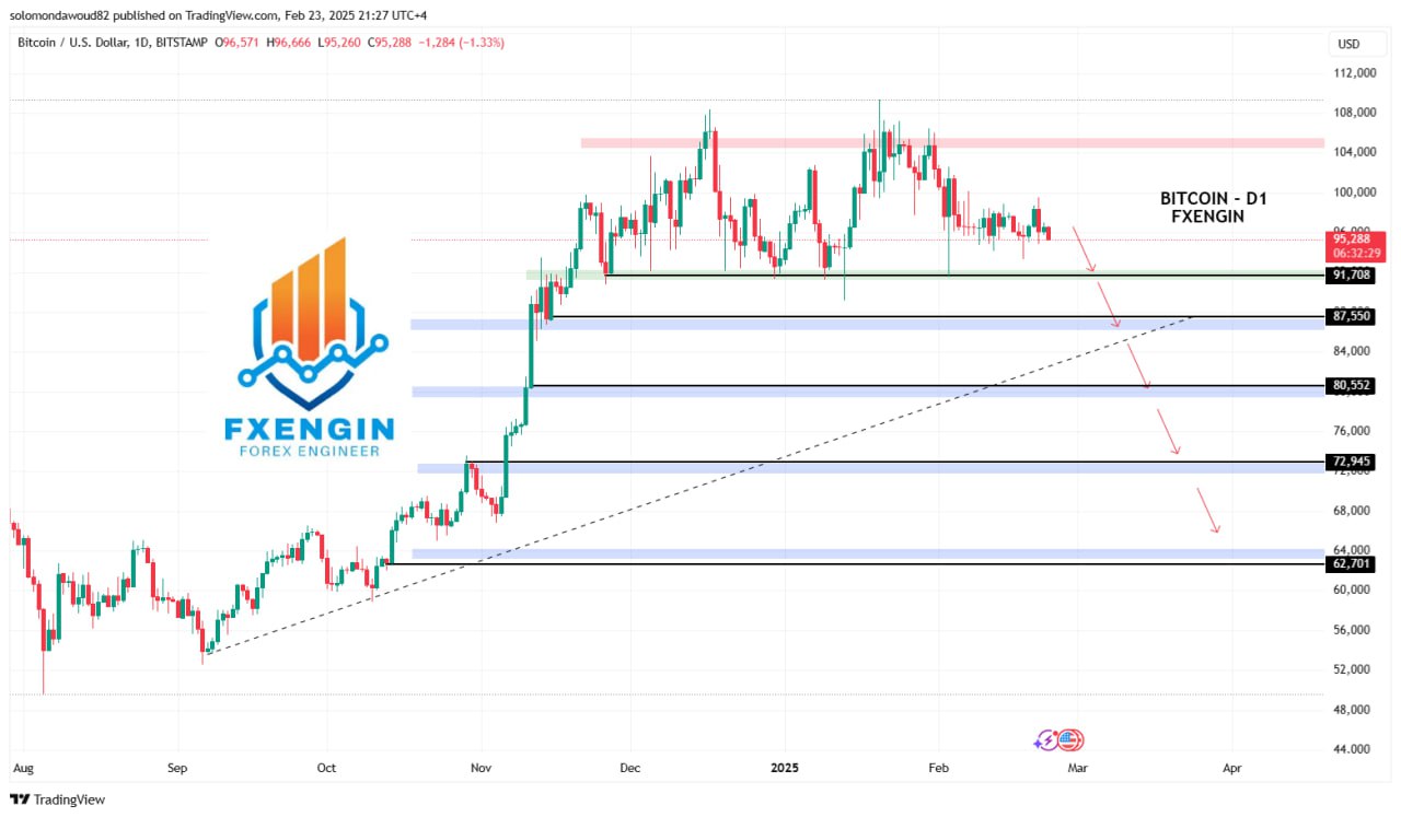 كسر الدعم 91,700 سيكون تأكيدًا قويًا على بداية موجة هبوط جديدة.