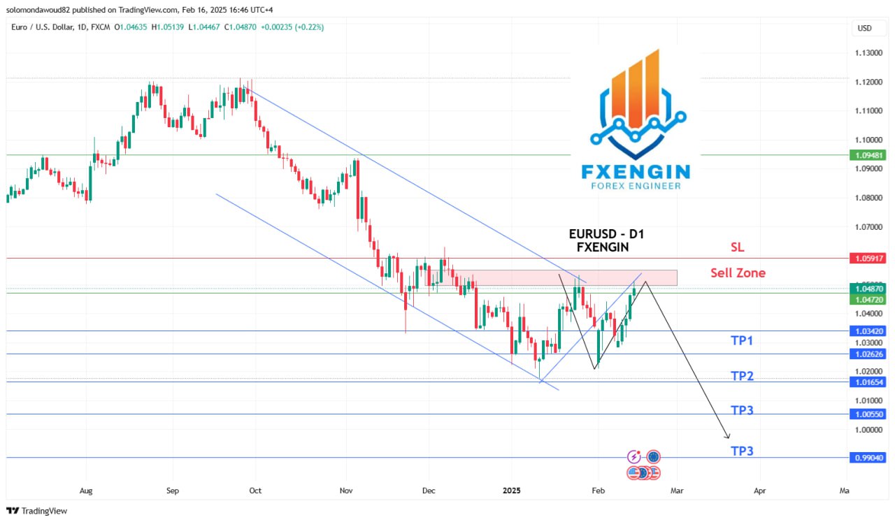 ارتداد السعر من منطقة 1.04870 – 1.04720 مع إشارات انعكاس هابطة.