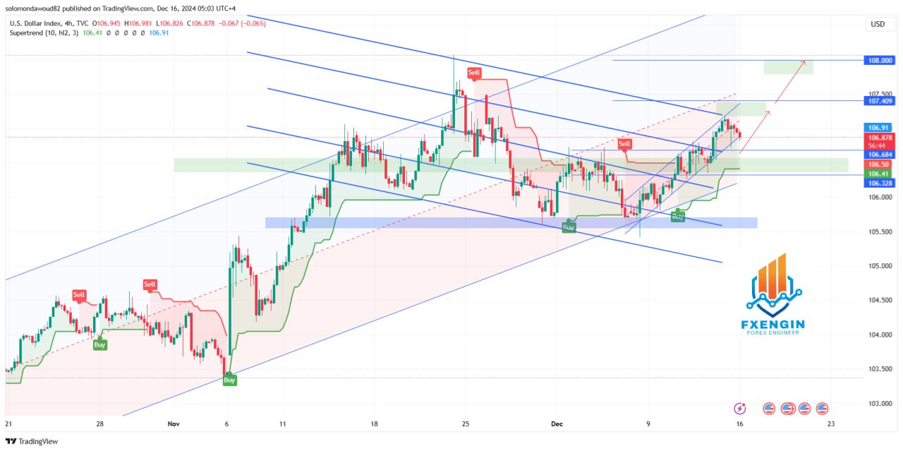 المؤشر يظهر “إشارة شراء” منذ تجاوز مستوى 106، مما يدعم الزخم الصاعد. - القنوات السعرية: