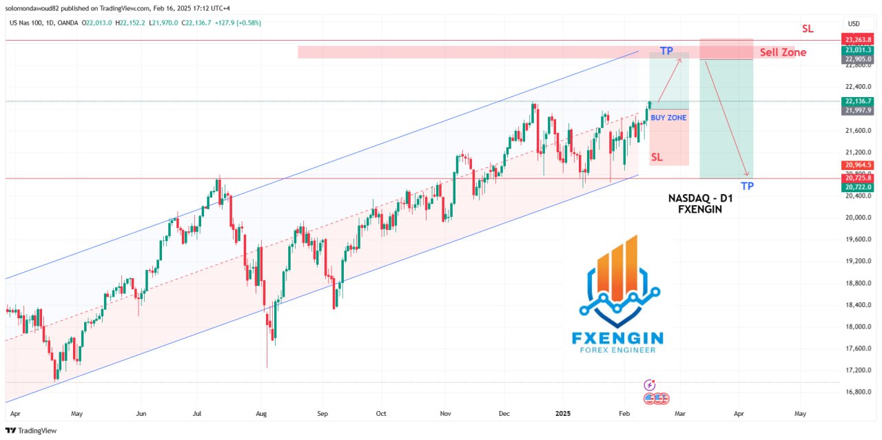 السعر حاليًا عند مستوى 21,970 ويقترب من منطقة البيع (Sell Zone) المحددة بين 22,905 – 23,263.