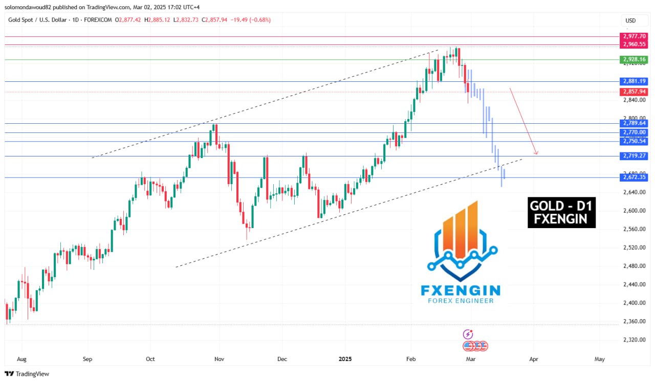 - تحليل الذهب (XAU/USD) – الإطار اليومي (D1)